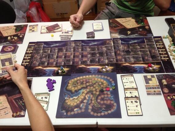 It feels like a game of ubongo (due to the way you are trying to achieve objective cards) and tetris (making sure the lower levels are built before you can build higher levels). The interesting thing was that Jon won the game without completing a single objective cards. Not that he did not try but because he was often screwed due to the difficulty of the cards he had gotten as well as the close proximity of the other players. Art wise it is pretty ok, the score board had little touches which were excellent. The choice of resources is questionable and may lead to a detraction from the theme. For example, why is Jade used? Knowing that this was a remake of an older game with a theme of the Great Wall of china, it feels as if the Jade resource was left in accidentally. Also, labourers and prisoners. Why are they related and how come 2 labourers can be changed into 6 prisoners?